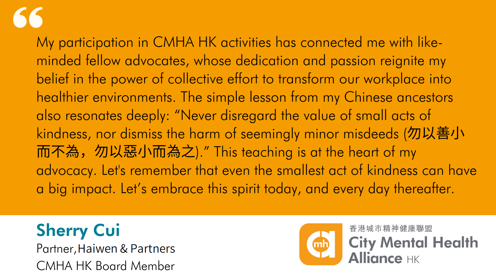 Sherry is a committed advocate for diversity, equity and inclusion, and is passionate about raising mental health and wellbeing awareness in the workplace. Sherry is a certified Mental Health First Aider in Hong Kong.